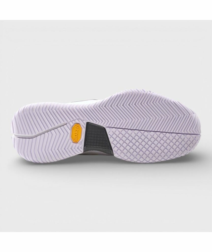De Bullpadel Paerl Vibram 26V is dé perfecte schoen voor speelsters die topprestaties willen op zowel padel als tennis. Deze elegante lila uitvoering combineert een modern design met hoogwaardige technologie, waardoor je op elk terrein kunt rekenen op optimale grip, stabiliteit en comfort.