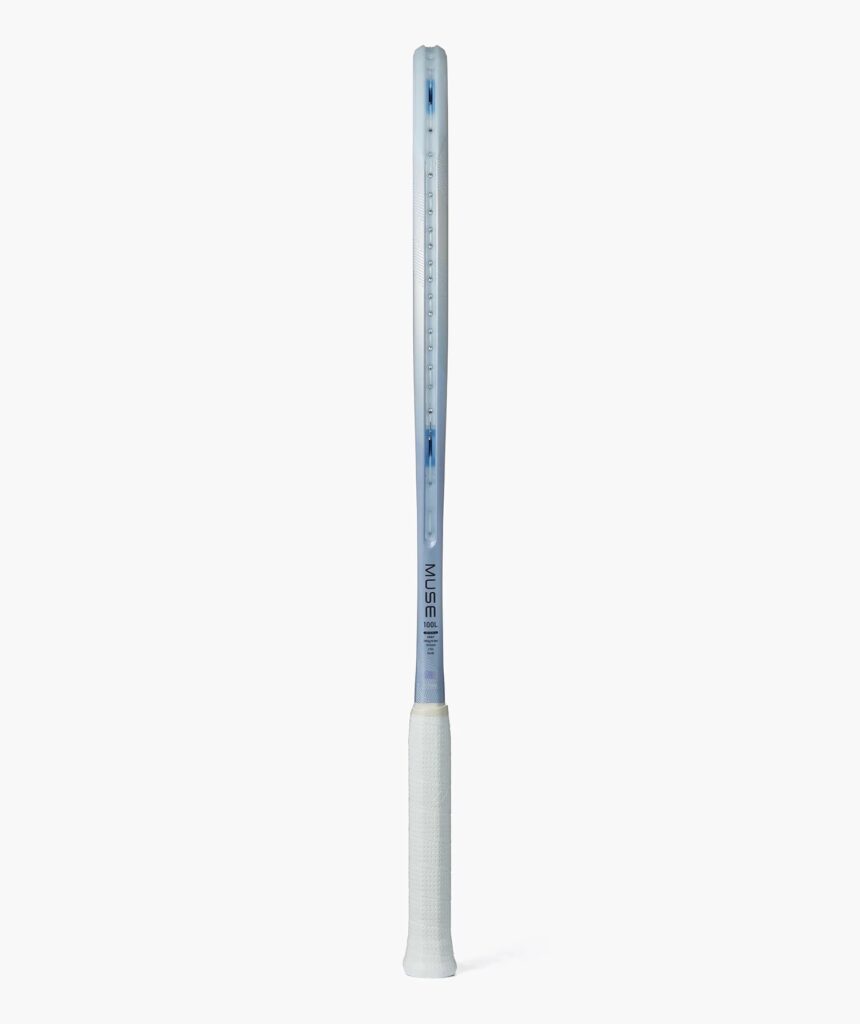 De Muse 100L gebruikt de kenmerkende Isometric™ kopvorm, goed voor een sweetspot die 7% groter is dan klassieke ronde bladvormen. Dit geeft meer controle en zekerheid, ook wanneer je de bal niet perfect raakt. De Uniform Impact Grommets zorgen voor meer en gelijkmatigere snaarbeweging, waardoor het racket over het hele blad dezelfde zachte, voorspelbare respons levert.